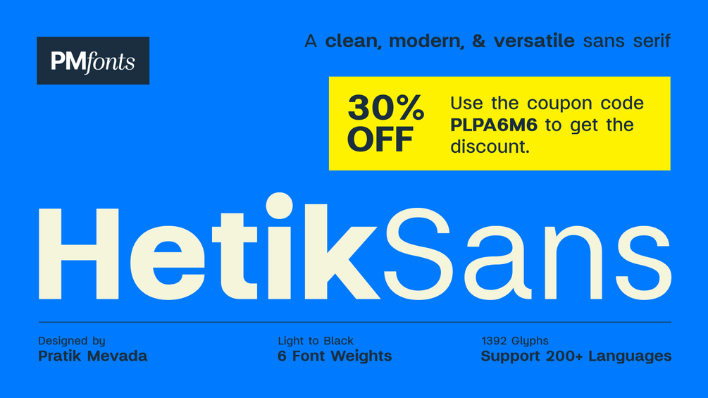Hetik is a clean, modern, and versatile sans serif font family designed with UI/UX designers, branding studios, and web creatives in mind. With 6 carefully crafted styles — from Light to Black — it brings clarity, balance, and personality to any project.
